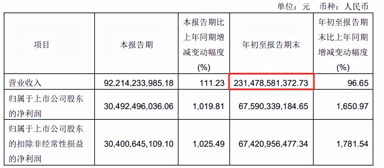 2021年10月29日,中远海运下属中远海控披露2021年第三季度报告显示,前三季度营业收入高达2314亿元,同比增长96.65%;实现归属于上市公司股东的净利润675.9亿元,同比增长1650.97%。