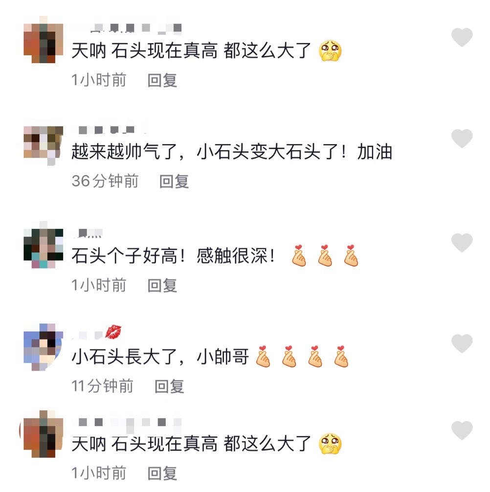 画面曝光后,网友们也非常吃惊“石头竟然长得这么高”,纷纷感叹道:“小石头变成了男子汉。”还有人在惊叹之余,笑称石头应该出一本《如何长高》的书。