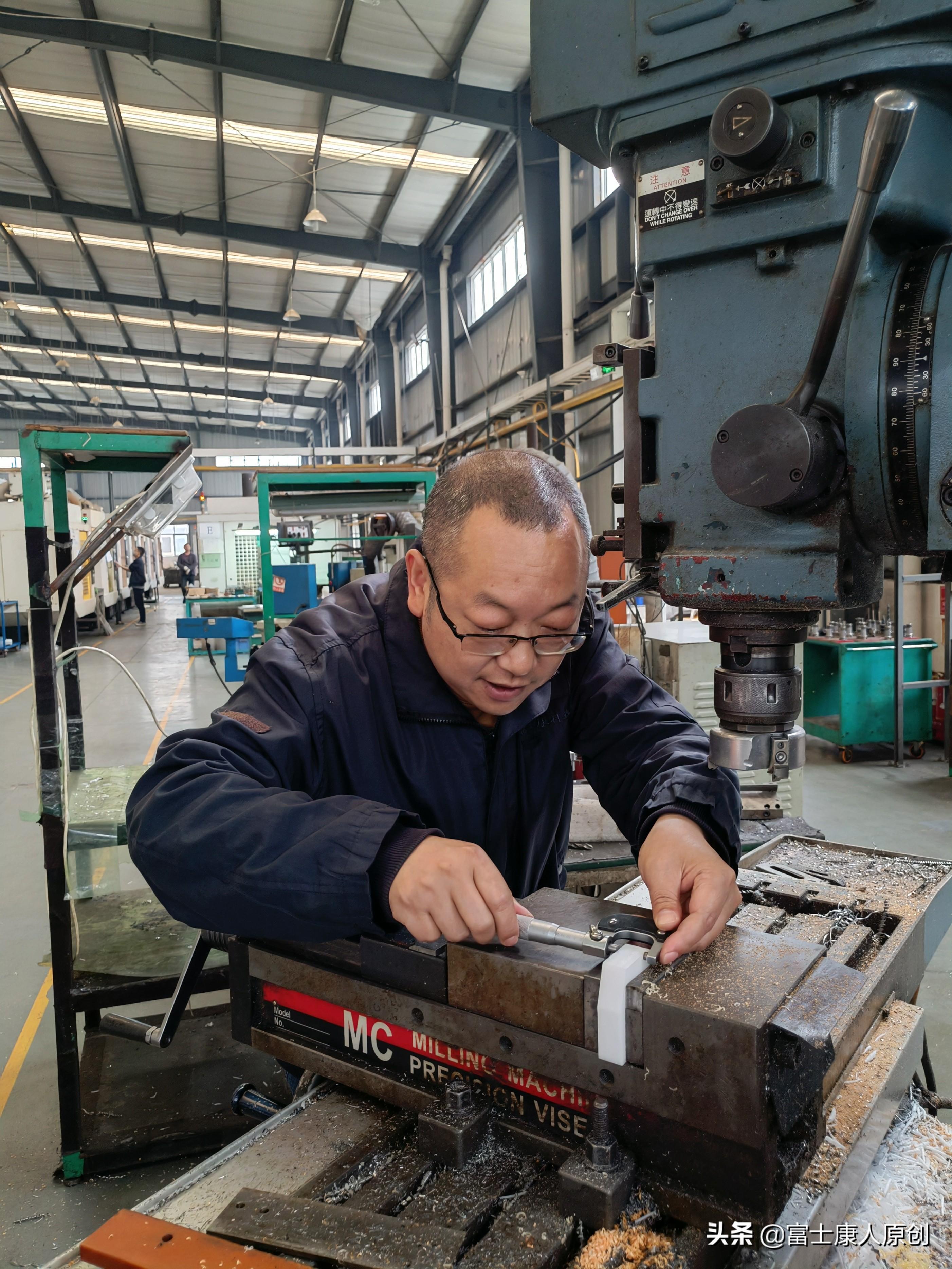 一周后,夏福彬就可以在CNC机台上加工简单的零件;两周过后,差不多可以单独操机。前期,为了不出差错、避免发生撞机,夏福彬每次操作都很谨慎。他先将程序编辑好,让机台空跑一圈,然后在主轴上装一支铅笔、在平台上放一张白纸,以笔代刀,确认铅笔运行轨迹正确,才正式开始加工作业。2002年,鸿准事业群开展全员技能比武,夏福彬在龙华园区铣削职系比武中获得三星银质奖章。当时,能拿到这项殊荣的员工,在铣削车间里没有几个。