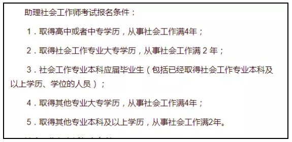 社会工作者职业水平考试,是民政局和人社局共同颁发的职业水平类证书,2008年开始在实施。报名条件如下: