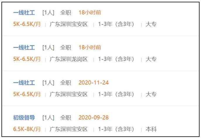 最后,也是大家最关心的一点:收入。社工的收入自然无法和互联网相比,优点是稳定,收入跟地区发展有关,地区差异比较大,比如深圳的话大概在16万左右,但基本在各地都能达到平均工资水平。
