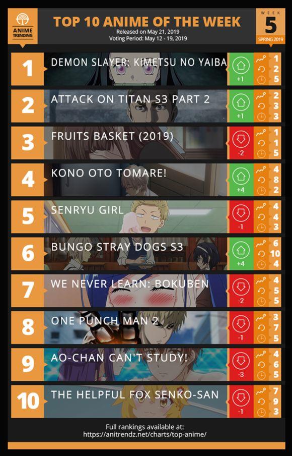 目前春季动画播放已经超过了一个半月,近日欧美动漫往网站animetrending公布了春季番动画第五周的排行榜。