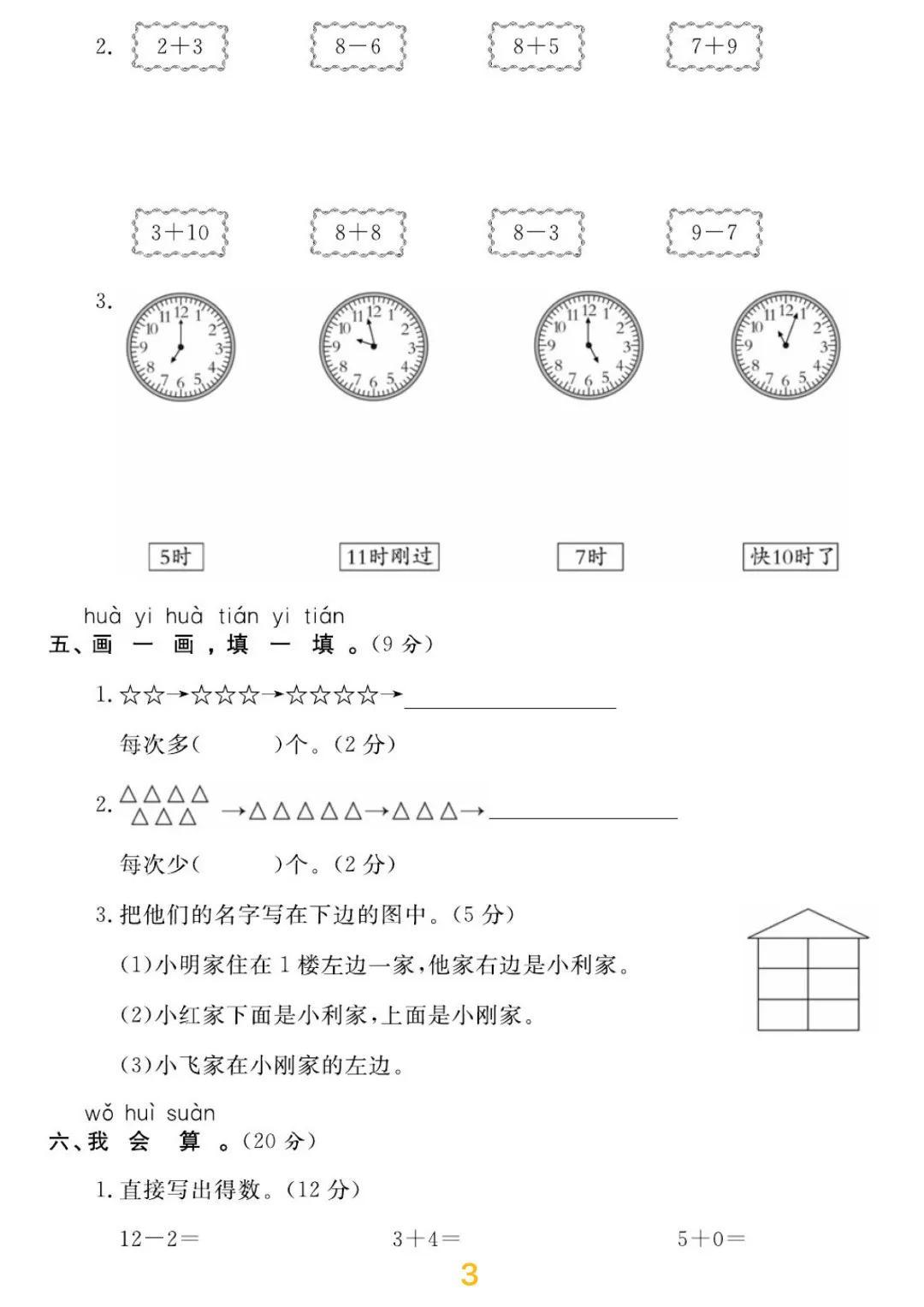 快到期末了,今天给大家分享一年级数学的期末精选试卷各3套,提前给自家孩子摸摸底,查缺补漏。