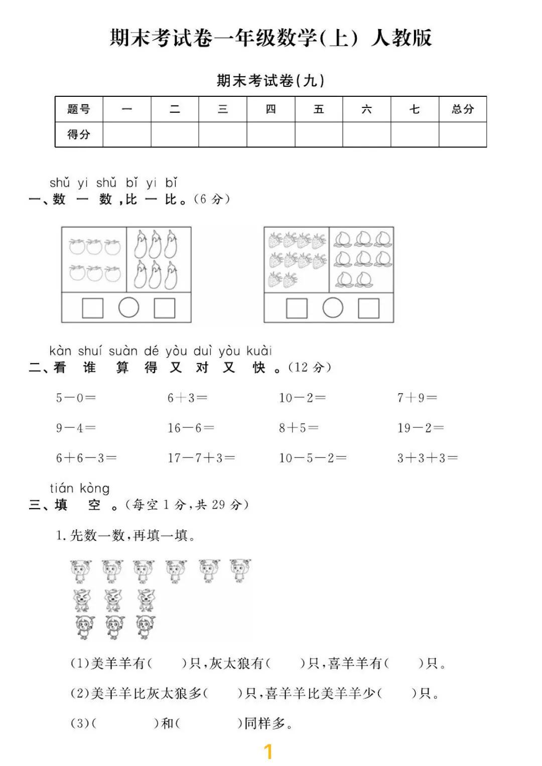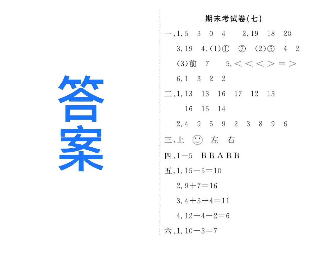 版权声明:我们致力于保护作者版权,注重分享,被刊用文章【一年级数学期末考试卷(一年级)】因无法核实真实出处,未能及时与作者取得联系,或有版权异议的,请联系管理员,我们会立即处理! 部分文章是来自自研大数据AI进行生成,内容摘自(百度百科,百度知道,头条百科,中国民法典,刑法,牛津词典,新华词典,汉语词典,国家院校,科普平台)等数据,内容仅供学习参考,不准确地方联系删除处理!;