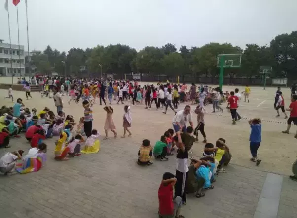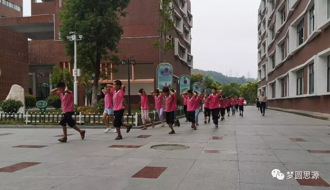 学生排成一路纵队,按学校指定的疏散路线,有序地撤离至安全地带——初中部运动场,小学部一至六年级中心广场。