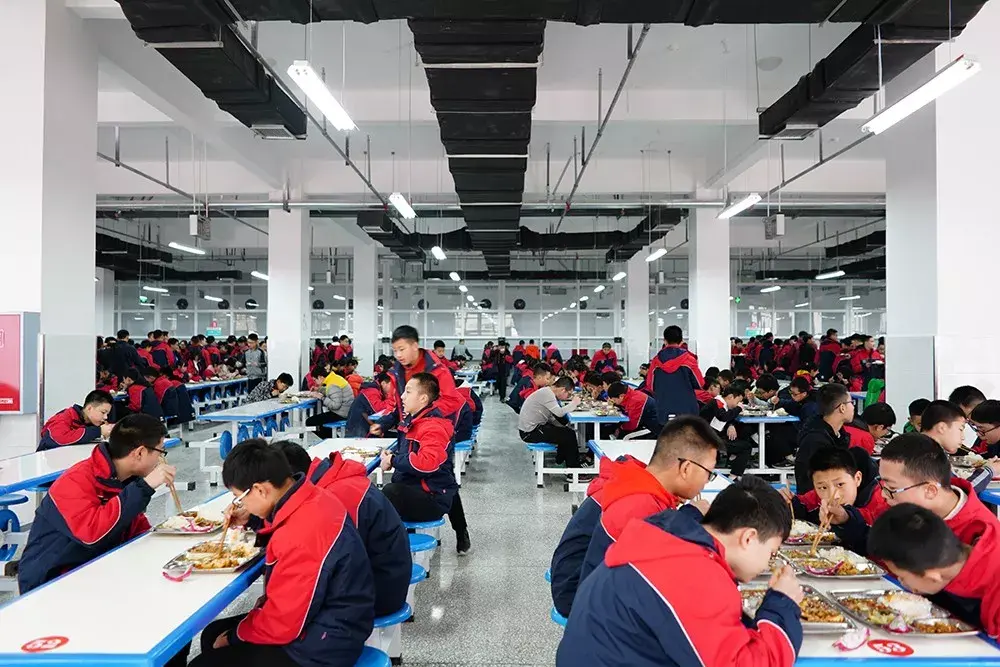 学校新建成的绵阳市规格最高、配置最好的食礼堂已投入使用,就餐环境优雅。学生实行打卡就餐,每餐可以在丰富菜品中自由选择;菜品齐全,价格便宜。实行人性化管理,高三学生可享受专门就餐窗口和特殊配餐服务。