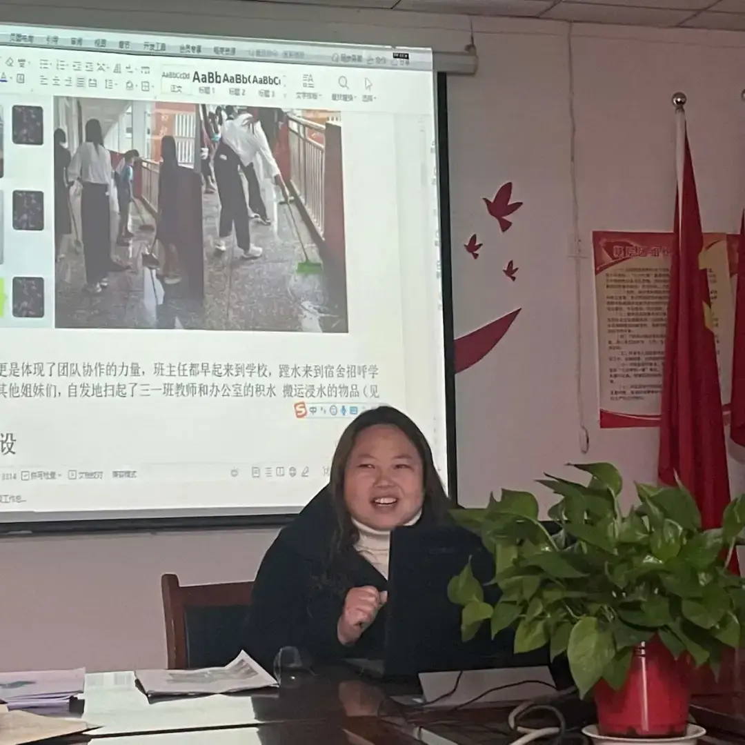 五年级王秀丽主任从德育和教学两个方面进行阐述:德育活动丰富多彩,充满灵动,社团活动精彩绘呈,百花齐放,教师队伍精诚团结,共同成长。汇报中,王主任说出了发自内心的感动:感动于年级部老师群策群力,团队协作;感动于班主任爱生如子,无怨无悔;感动于老带新倾囊相授,初见成效;感动于跳绳健将不惧裤落,顾全大局;感动于金陵风云学子满景琰不怕腿伤,为求学,拄双拐,风雨无阻。最后,王主任提出新学期举措,不忘初心,砥砺前行!