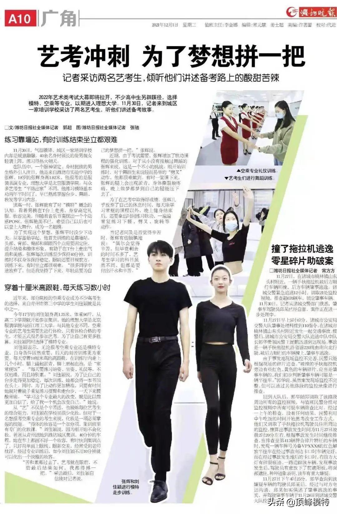 2022年艺术类考试大幕即将拉开,不少高中生选择了模特、空乘等专业,期望考入理想大学。11月30日,潍坊日报社记者也来到顶峰艺术教育培训学校采访了两名艺考生,下面让我们一起来听听他们讲述的备考故事吧!