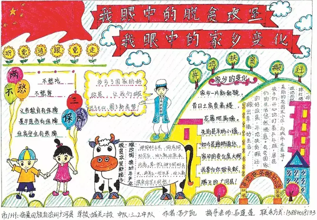 2019年以来,全州共青团组织和少先队组织深入学习贯彻习近平总书记参加十三届全国人大二次会议甘肃代表团审议时的重要讲话及习近平总书记在参加“五四”运动100周年上的重要讲话精神,贯彻落实习近平总书记对少年儿童的殷切希望,全州少先队工作蓬勃健康发展。为引导全州广大少先队员感知新中国成立70周年来党和国家的巨大成就,充分展示临夏州脱贫攻坚重要成果,以少先队员视角反映临夏州脱贫攻坚巨变,共青团临夏州委、临夏州少工委近期在全州各级少先队组织中开展了以“我眼中的脱贫攻坚我眼中的家乡变化”为主题的手抄报展示活动。