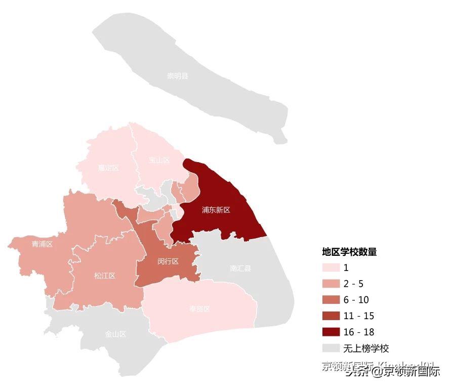 根据“2018年中国国际学校竞争力排行榜300强”,截至2018年10月31日,上海地区上榜的国际学校共达到52所分布在13个区。