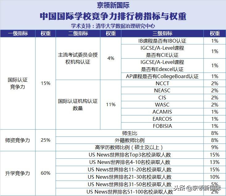 上海地区的上榜学校比北京地区少3所,本文将以京领新国际榜单的三大指标体系:国际认证竞争力,师资竞争力,升学竞争力,来详细解读上海地区国际学校规范办学程度、师资力量、以及升学质量,评估该地区的国际学校竞争