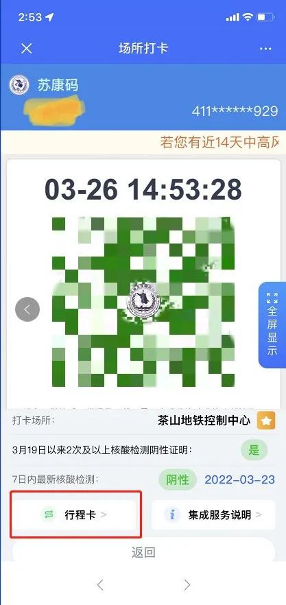 实时行程卡也可以点击“场所码”界面上的“行程卡”,进行实时查验。
