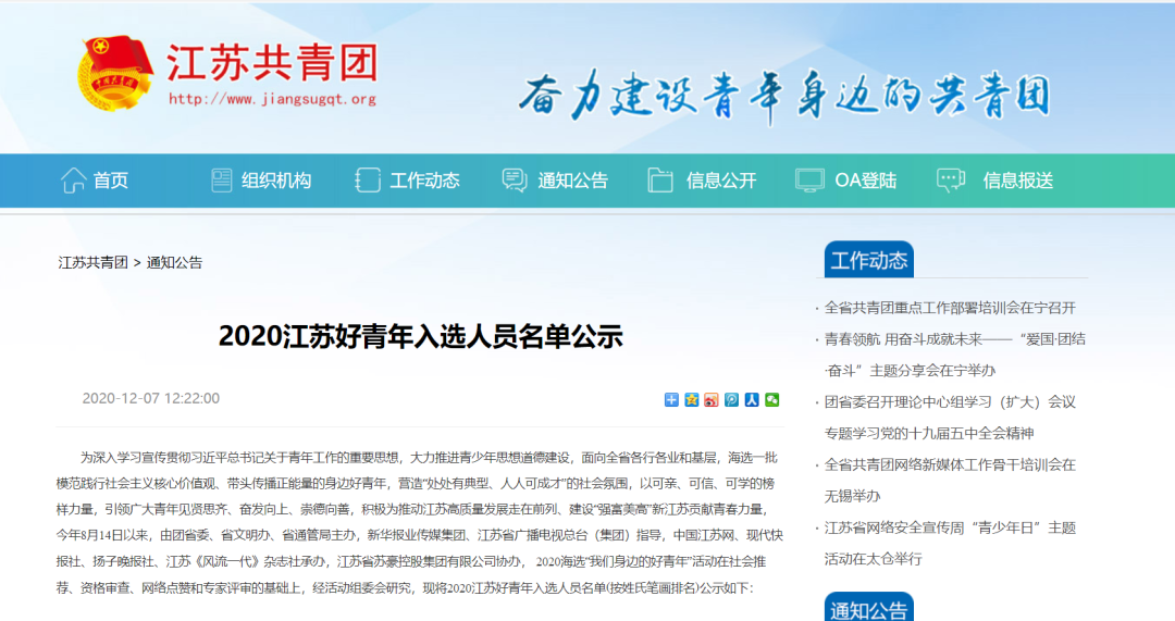 团省委日前公布2020江苏好青年名单,我校高三(1)班李彦祺同学获此殊荣。