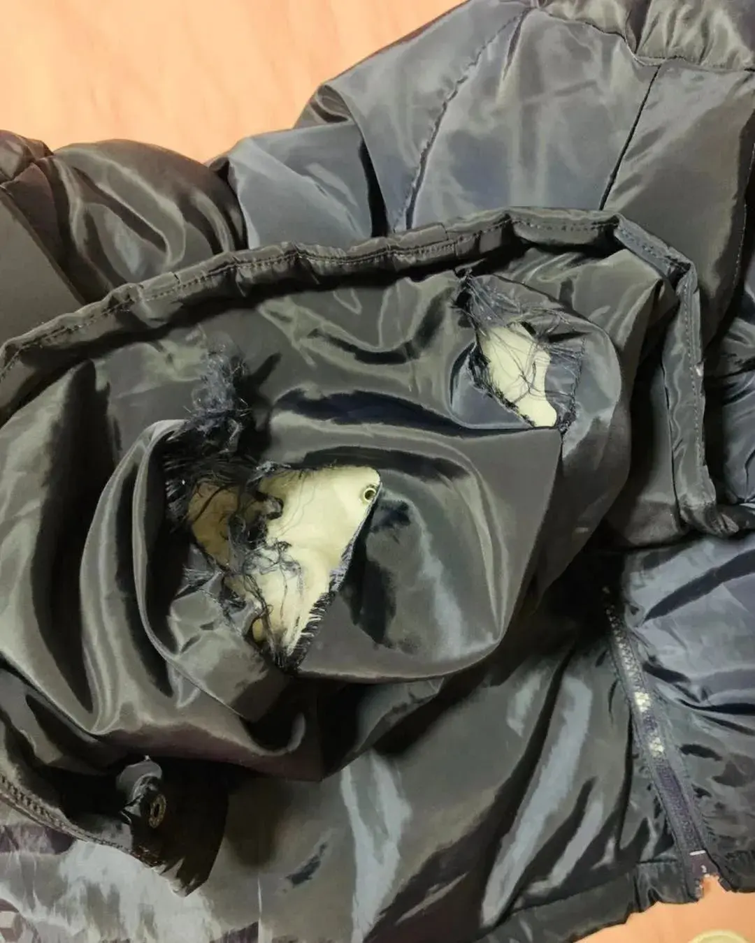 令家长生气的还是校服的质量差,买到的校服居然不能用水洗,一洗就是一坨一坨的,掉色也就算了,而且还会发臭。还有家长将衣服剪开后发现,说好的鸭绒大部分不是羽绒,10件里有8件都没办法穿。