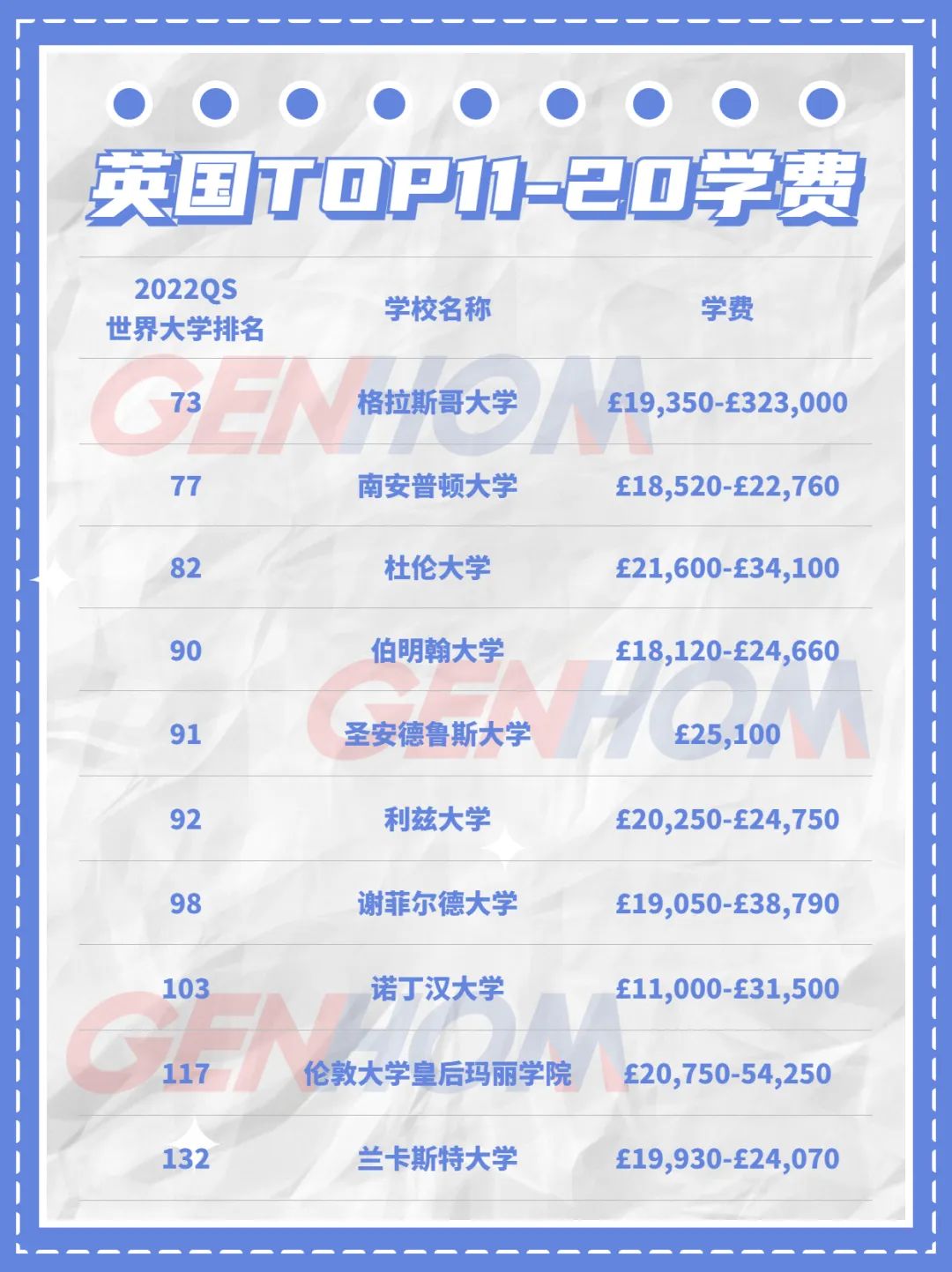 根据英国泰晤士报公布的2022学年各个院校学费情况,我整理盘点了英国TOP20院校的学费情况: