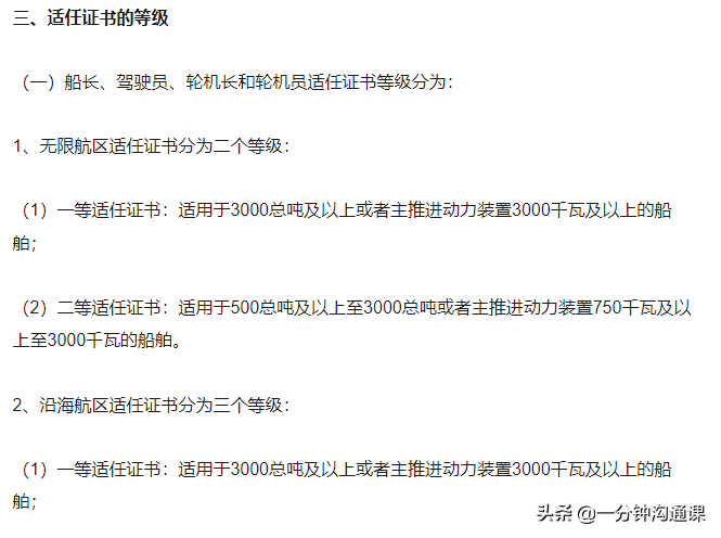 因此,你必须考一个适合自己的等级证书,然后去应聘对应的职位和吨位的船体。