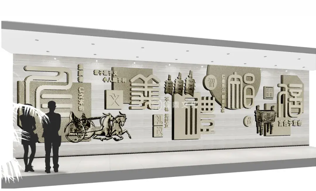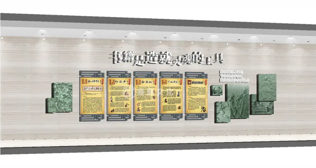 将篆书、行书、草书等字体用“活字印刷术”的形式表现出来,赋予图书馆更直观的文学气息与更丰富的文化内涵。