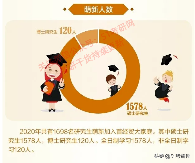 2021年,首经贸共录取1800名硕士研究生, 其中推免生284人,统考生1516人。总录取数相比上年增加222人,其中推免人数增加83人,统考生增加139人。