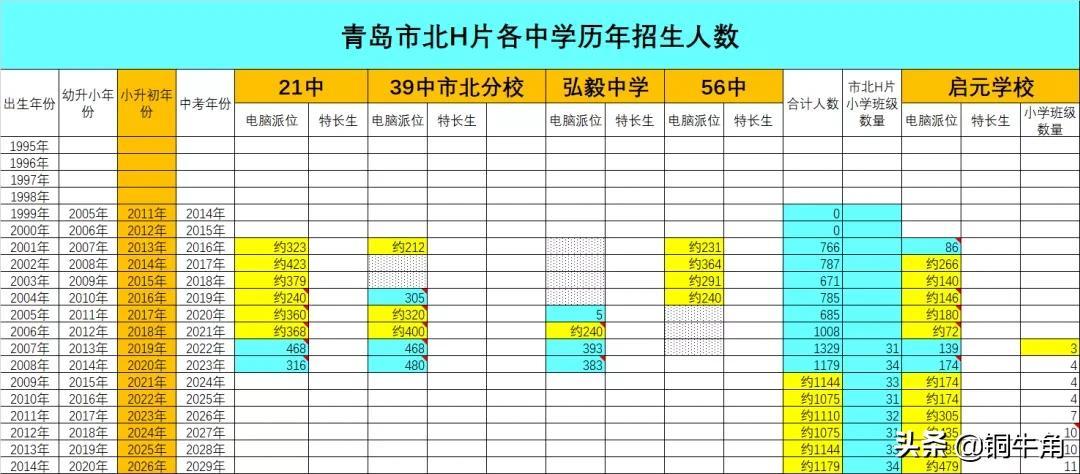 在《青岛学区的密码(14):透过中小学分班数字看青岛市北H片 》一文中,铜牛角曾经论述过2019年青岛市北H片区的小升初。