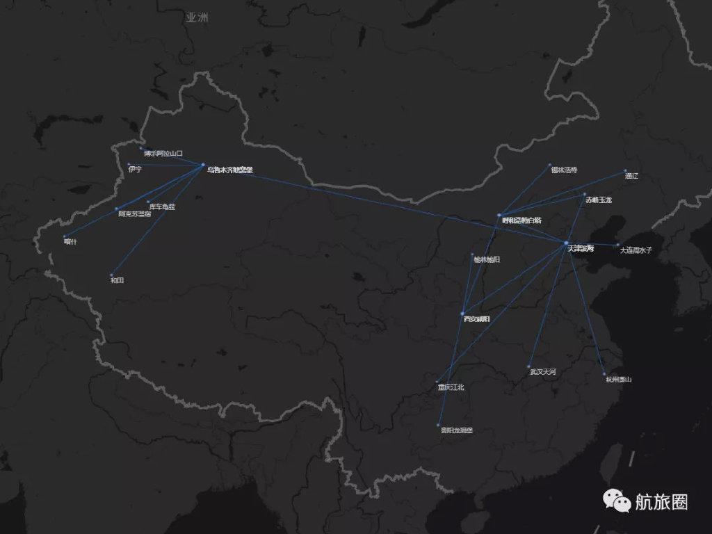 青岛航空最繁忙的20条航线中,除8条从青岛出发,其余航线分布相对比较分散。