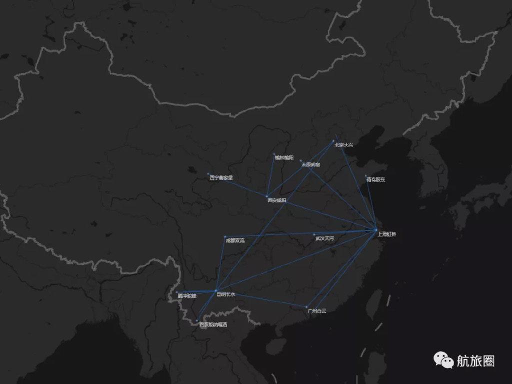 东航最繁忙的20条航线中,上海、昆明各占9条(含上海虹桥-昆明长水),一定程度上也反映出云南市场在东航航线网络中的地位之高。此外还有4条航线涉及西安。三个枢纽分别位于华东、西南和西北,从地理位置来看能更好的兼顾东南西北各个市场。