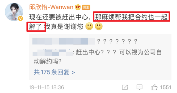 之前被要求把行李搬出宿舍,她直接发文求合约放过。