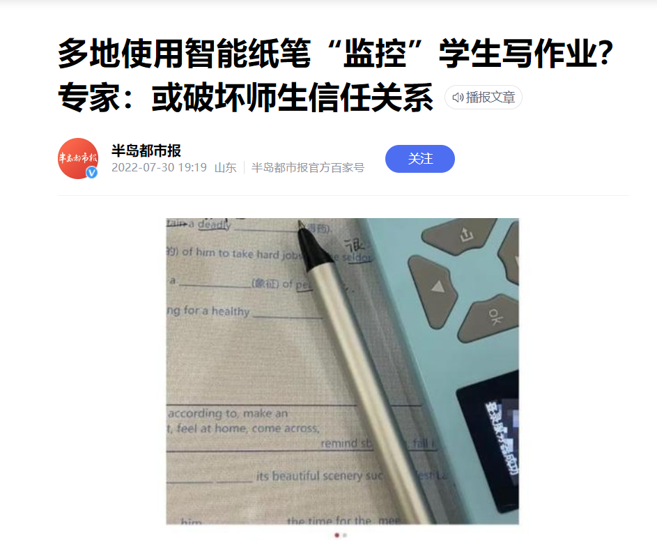近期不少家长和老师后台询问胖胖老师,说学校要搞智慧纸笔课堂,推荐学生使用拓思德等品牌的点阵笔,不知道好不好用。在结合前一段时间网络上沸沸扬扬的智能纸笔“监控”学生作业的新闻,胖胖老师不禁感叹,智能纸笔的“经”怎么就被念歪了呢?