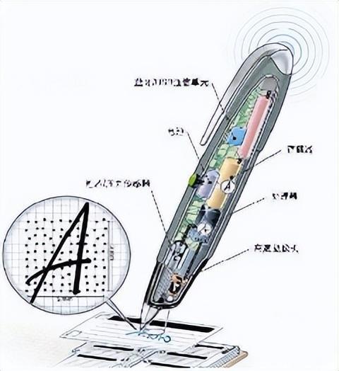 点阵笔是通过在普通的纸张上印上一层不可见的点阵图案,数码笔前端的高速摄像头随时捕捉笔尖的运动轨迹,同时压力传感器将压力数据传回数据处理器,最终将信息通过蓝牙或USB线向外传输。这些信息包括纸张类型、来源、页码、位置、笔迹坐标、运动轨迹、笔尖压力、笔画顺序、运笔时间、运笔速度等信息。