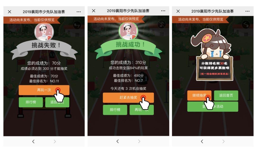 参与少先队鼓号队点赞结束后,千万别急着关掉页面!2019襄阳市少先队加油赛”有趣小游戏,丰富奖品和奖励票数等你来拿!