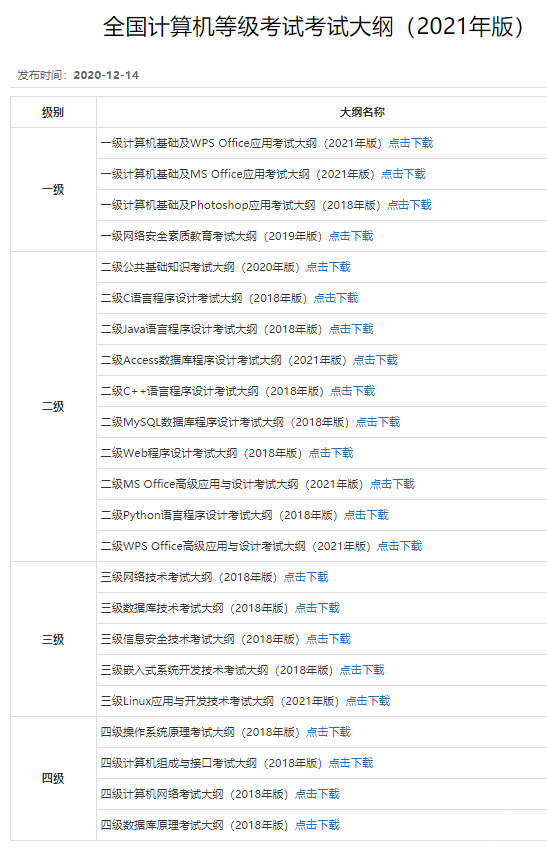 部分科目考试大纲进行了修订,2021年考试大纲目录如下