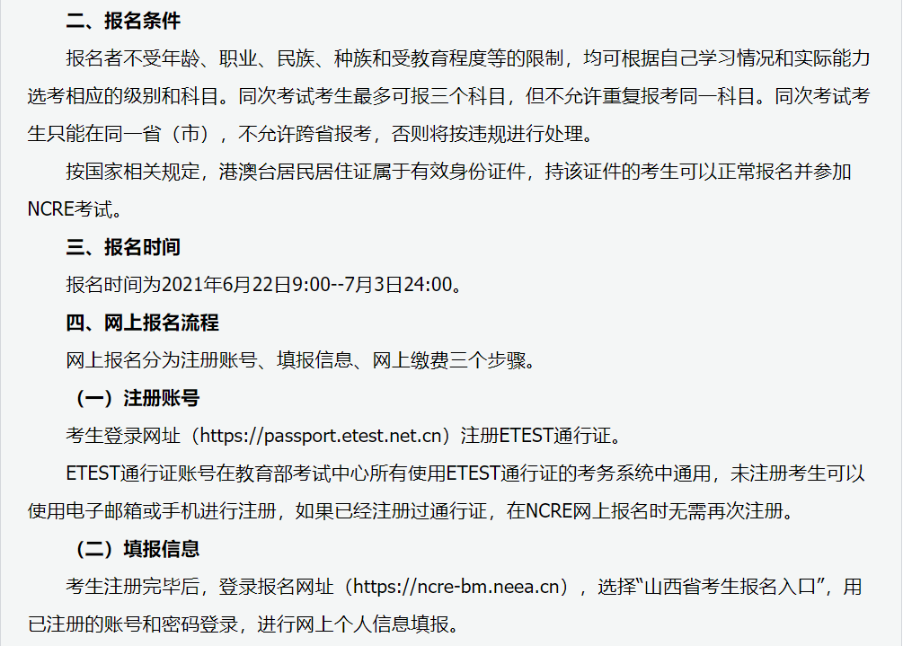 网上报名、网上缴费时间:2021年6月21日9:00--25日17:00