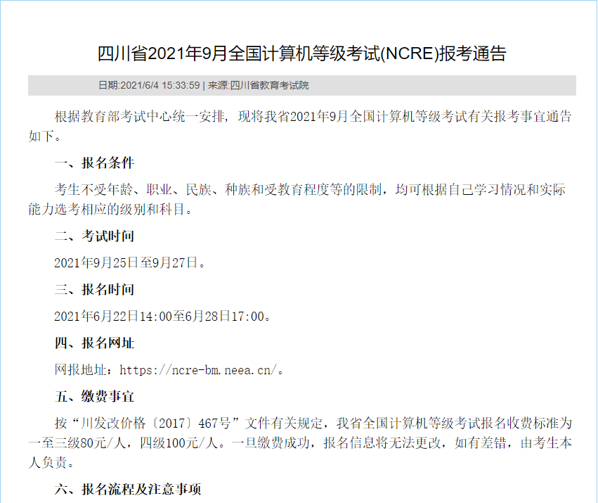 版权声明:我们致力于保护作者版权,注重分享,被刊用文章【计算机二级考试什么时候报名(21年9月计算机二级13地报名时间汇总)】因无法核实真实出处,未能及时与作者取得联系,或有版权异议的,请联系管理员,我们会立即处理! 部分文章是来自自研大数据AI进行生成,内容摘自(百度百科,百度知道,头条百科,中国民法典,刑法,牛津词典,新华词典,汉语词典,国家院校,科普平台)等数据,内容仅供学习参考,不准确地方联系删除处理!;