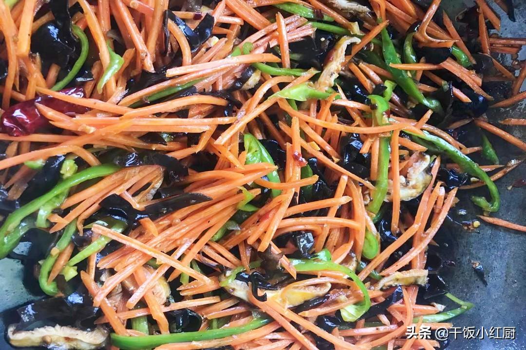 6.然后倒入所有的配菜丝大火翻炒两分钟,食材断生以后沿锅边淋入调好的鱼香汁,继续大火翻炒让料汁均匀包裹在配菜丝上面,再倒入鸡蛋继续翻匀后即可出锅。