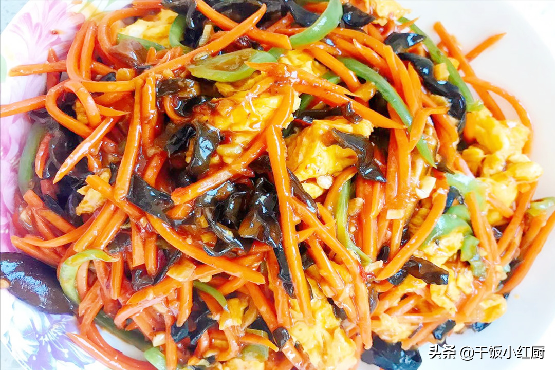 1.鱼香鸡蛋这道菜其实就是鱼香肉丝的素菜版,咸鲜酸甜兼备,非常的开胃。首先准备四个鸡蛋打入碗中,搅拌打散成蛋液;胡萝卜切成细丝,再切一点青椒丝用来搭配颜色。