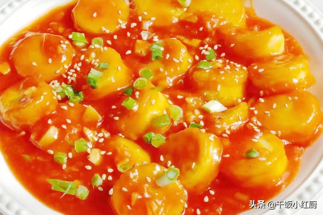6.一直把汁收浓,撒上葱花、芝麻即可出锅。