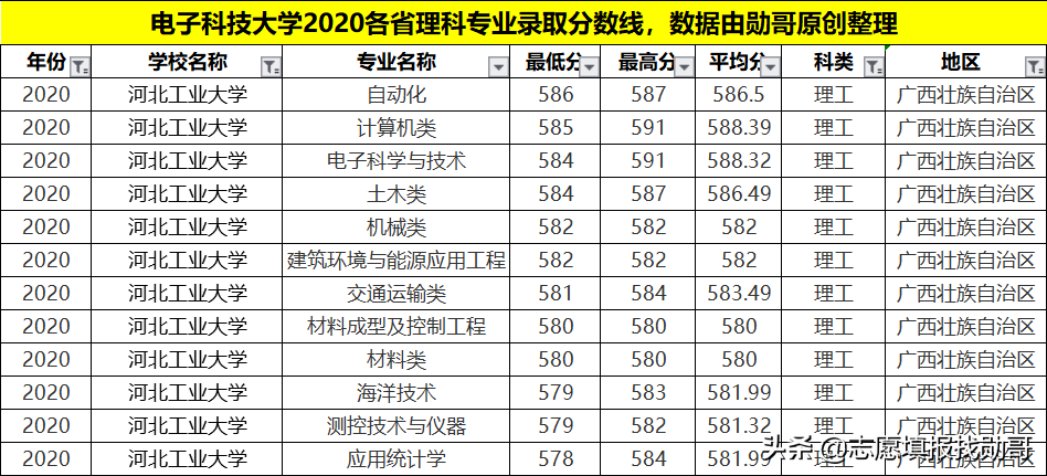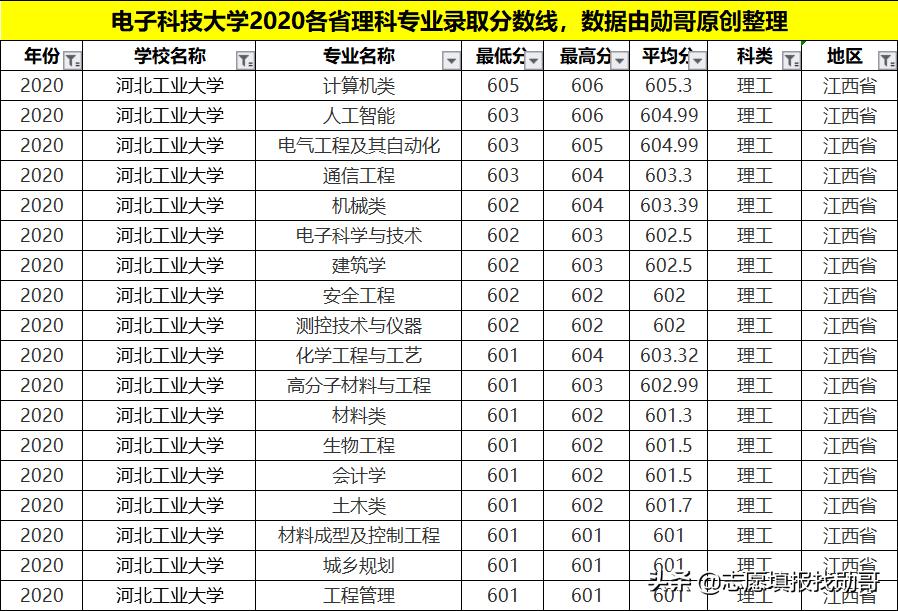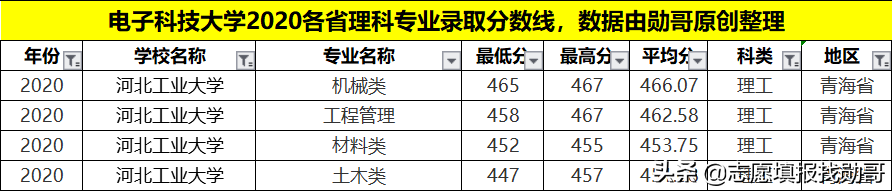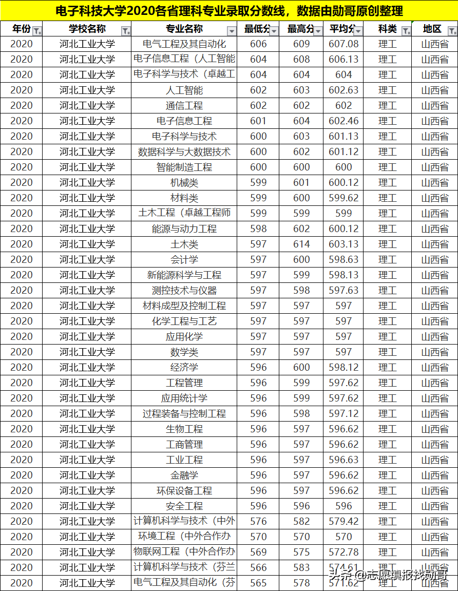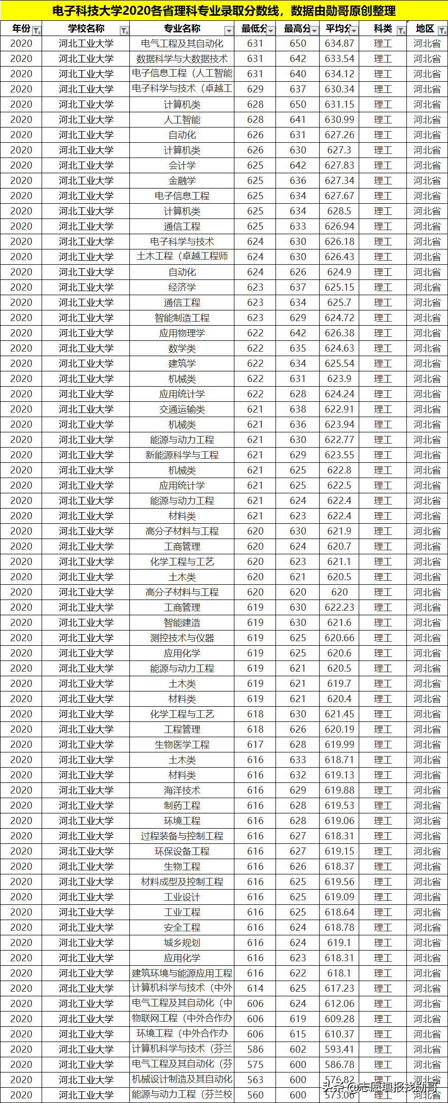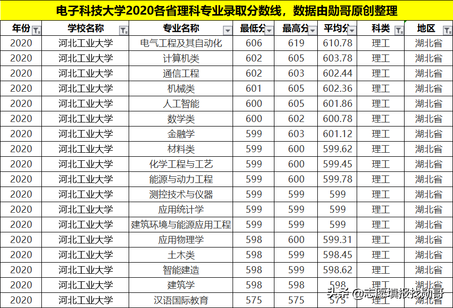 9、河北工业大学2020年在湖北的各专业录取分数线