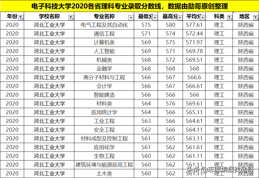 19、河北工业大学2020年在陕西的各专业录取分数线