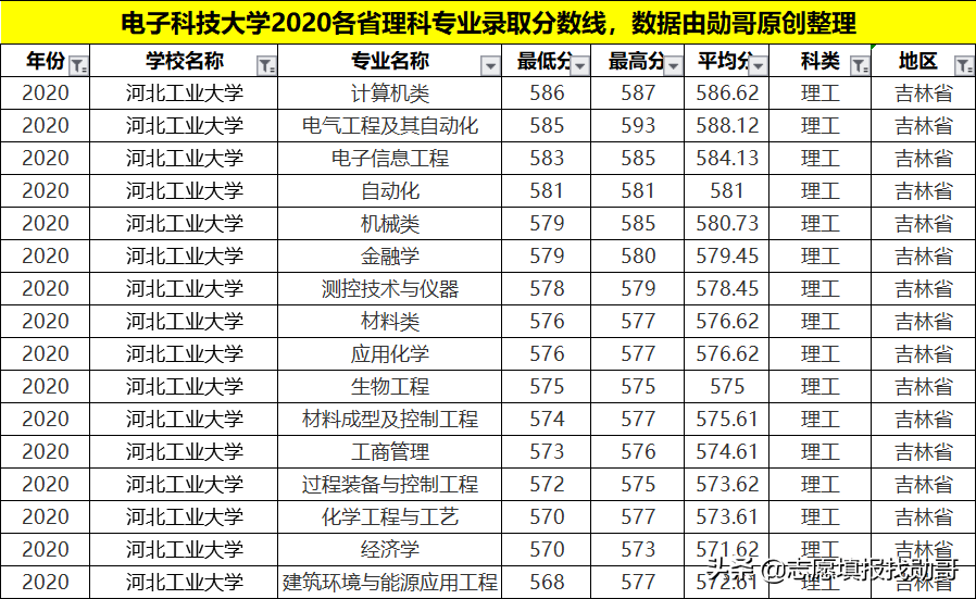 11、河北工业大学2020年在吉林的各专业录取分数线