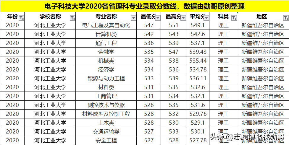 21、河北工业大学2020年在新疆的各专业录取分数线