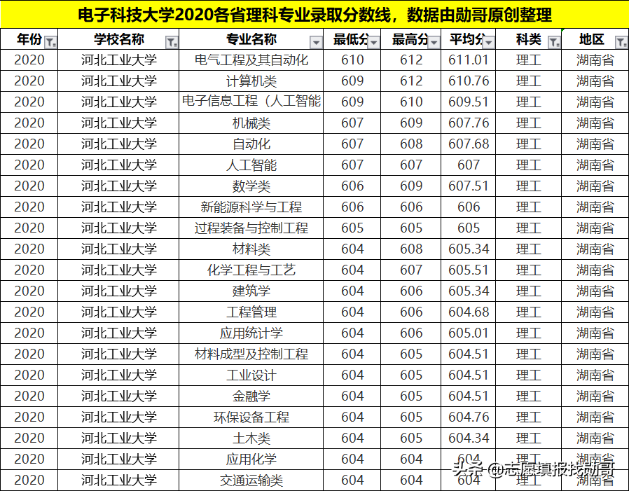 10、河北工业大学2020年在湖南的各专业录取分数线