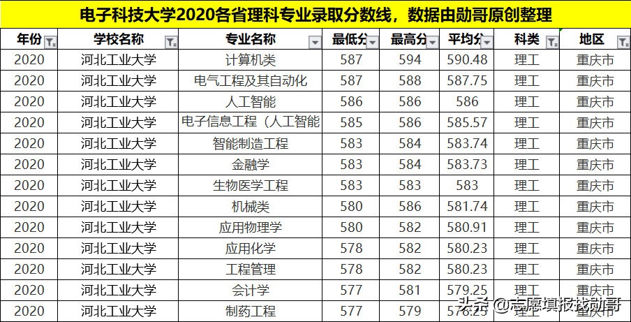 23、河北工业大学2020年在重庆的各专业录取分数线