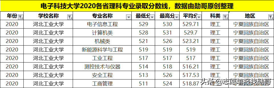16、河北工业大学2020年在宁夏的各专业录取分数线