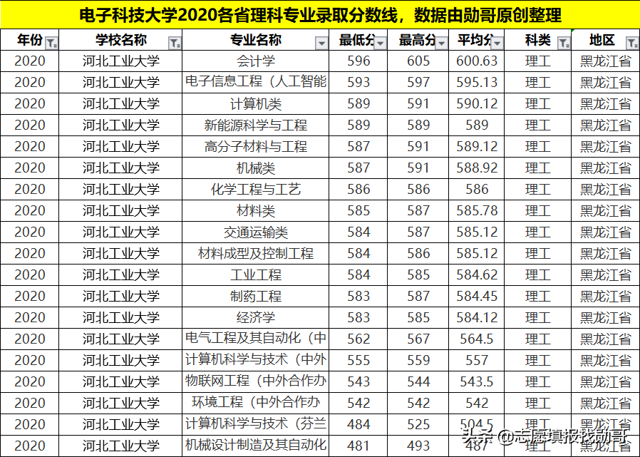 8、河北工业大学2020年在黑龙江的各专业录取分数线