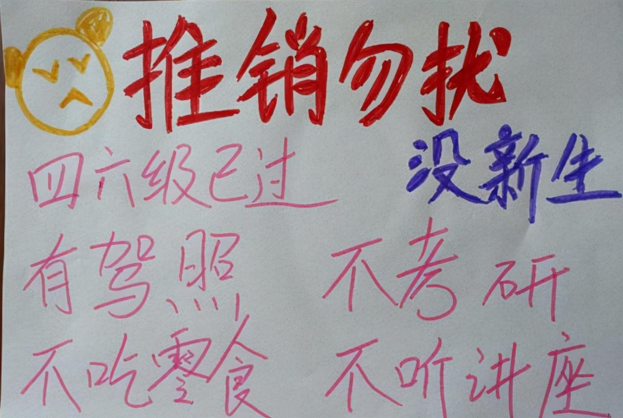 大学生寝室标语能有多“猖狂”?学生为了阻挡推销费尽心思