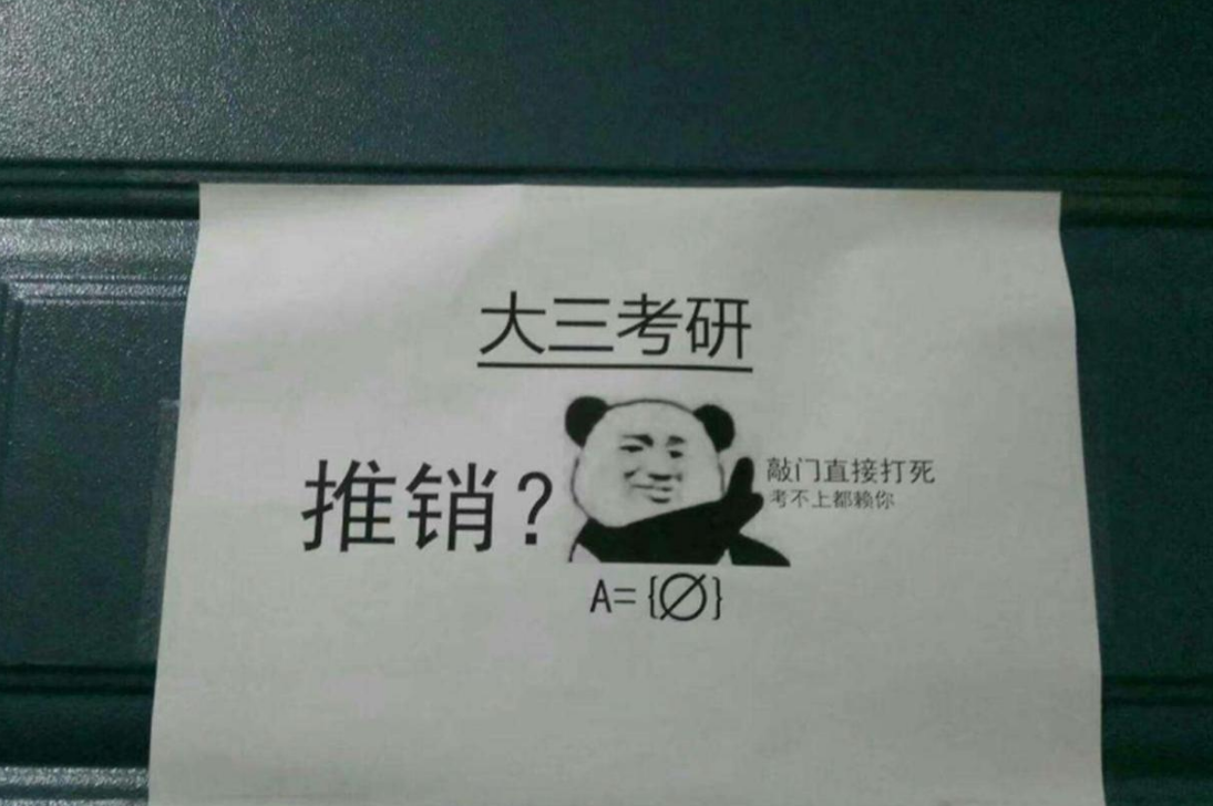 要说大一新生“害怕”学姐还情有可原,那大三学生就没什么好怕的了,毕业前最重要的一年,忙着考研的学生很多,知识都学不完哪还有时间让别人进来说废话,直接贴上标语:考不上都赖你,也是绝了,这谁能承担的起呢?
