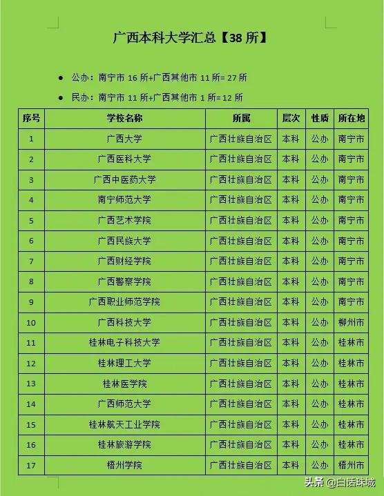北海的教育在全广西来说,真的是不尽如人意的,我们广西一共有大学78所,其中本科大学有38所专科大学有40所。而从这份大学名单来看,北海市本科大学只有两所,而且两所大学都是民办大学,更有甚者北京航天航空大学北海学院已经停办多年,而专科大学北海也只有一所,北海职业学院。