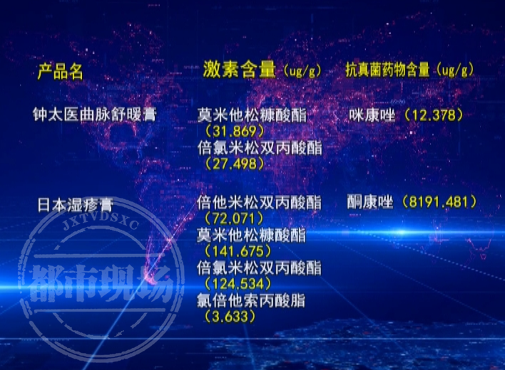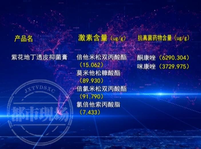 江西省皮肤病专科医院 副主任医师 朱永军:看了一下检测报告,它里面都加了比方说氯倍他索啊、倍他米松啊这些激素的成分。这些激素都属于强效、中强效成分,所以在外用的时候,确实是有效果。有些消字号产品里面会加一些抗真菌的,有些加激素的药膏,因为你分辨不出,到底是湿疹皮炎之类的,还是一个真菌类的感染,所以它用了都有效,按国家要求,肯定是不能添加的。