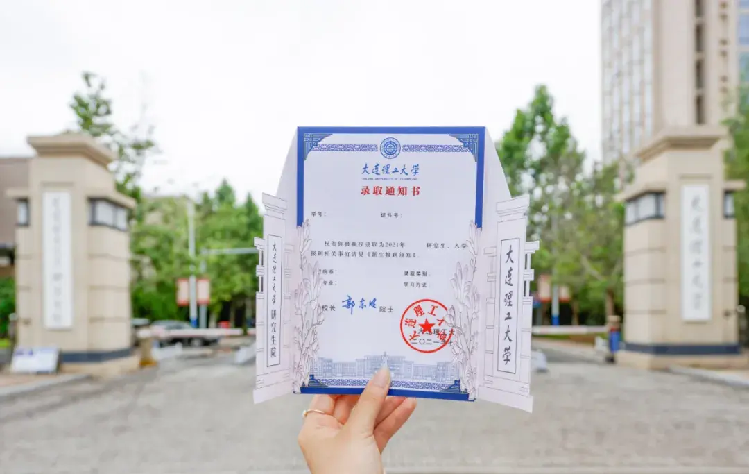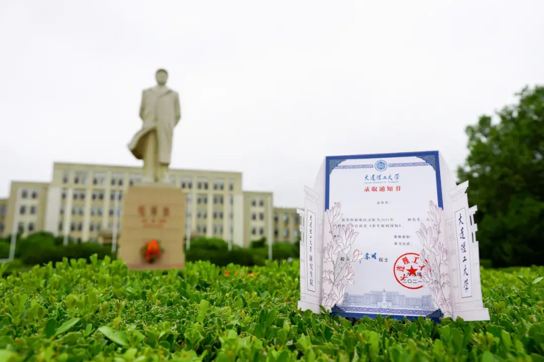 通知书最外层是学校的新北门。新北门以承载了几代大工人记忆的老校门为原型,是学校的一个引领与向导,具有深刻的纪念意义与领域感。在原有大工老校门的基础上进行修建的新校门,表达了学校对学子的深深期盼与殷切寄托。录取通知书上的新北门元素象征着大工欢迎来自五湖四海的研究生新生们。