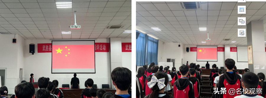 会议第一项议程:奏唱国歌。伴随着国歌的旋律,同学们的高声歌唱,激昂澎湃的歌声,充满整个会场,大会也在此时拉开了帷幕!