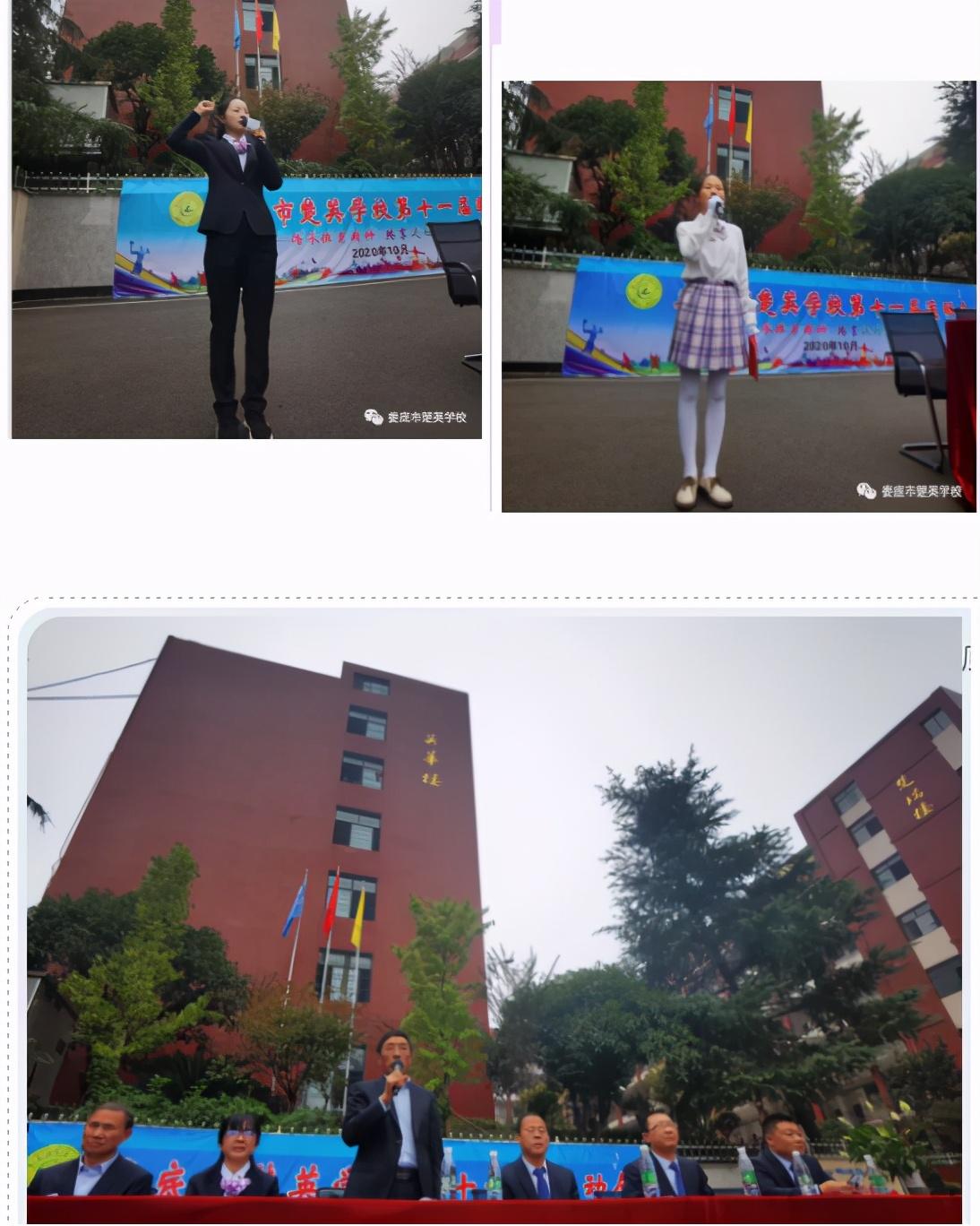 初102班聂艾欣同学代表所有运动员,罗晓蕾老师代表所有裁判员分别宣誓后,肖董事长宣布:“楚英学校第十一届中学生运动会比赛开始!”